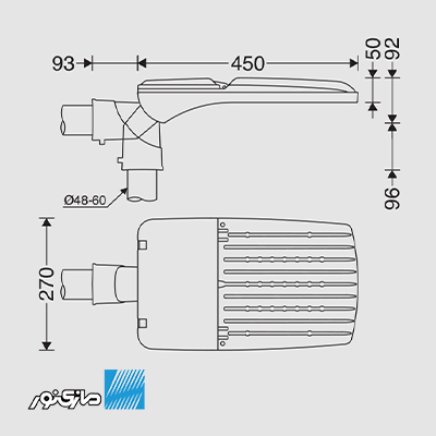 این چراغ خیابانی مقاوم در برابر ضربه و اشعه UV است. ابعاد آن ۴۵۰*۲۷۰*۵۰ میلیمتر است و همچنین دارای ۵ سال ضمانت است.